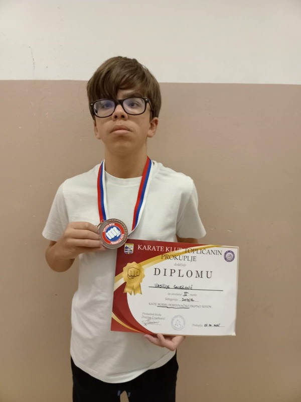 У Прокупљу у организацији карате клуба Толичанин, ученик седмог разреда Василије Гавриловић освојио је треће место у категорији борбе појединачно.