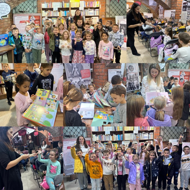 Ученици првог разреда, одељења 1/1 и 1/2, посетили су Народну библиотеку ,,Радислав Никчевић” са својим учитељицама. Ученици су посетили одељење за децу где су упознати са начином рада библиотеке. Научили су правила понашања, причали о омиљеним књигама, прелиставали енциклопедије и постали почасни чланови библиотеке.
