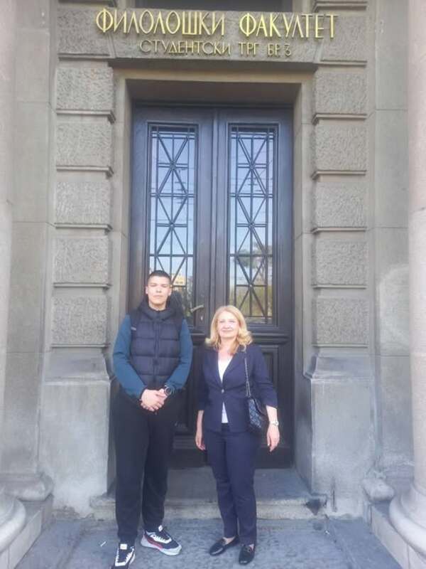 На Републичком такмичењу из енглеског језика, одржаном 19. 4. 2026. године, на Филолошком факултету у Београду, наш ученик 8. разреда, Лука Јеремић бриљирао је на усменом делу испита где је освојио максималан број поена, док је на писменом делу освојио поен мање од максимума, што му је донело изванредно треће место у конкуренцији од 150 такмичара. Честитамо Луки на изузетном резултату и желимо му много успеха у даљем школовању. Ментор: Татјана Ђурђевић