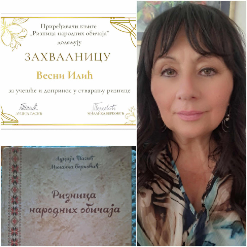 Са великим задовољством и поносом, обавештавамо вас да је наша колегиница, Весна Глигоријевић - Илић, узела значајно учешће у креирању књиге " Ризница народних обичаја", коју су приредиле, такође наше колегинице из Ваљева, учитељице, Луција Тасић и Миланка Берковић. Књига је настајала шест година, а у том подухвату је учествовало 230 просветних радника из 9 балканских земаља. Наша колегиница, Весна Глигоријевић- Илић, је у ову збирку уврстила три своја ауторска текста, везана за обичаје и легенде нашег краја. Честитамо Весни на успеху и захваљујемо се што на овај начин промовише и нашу школу.