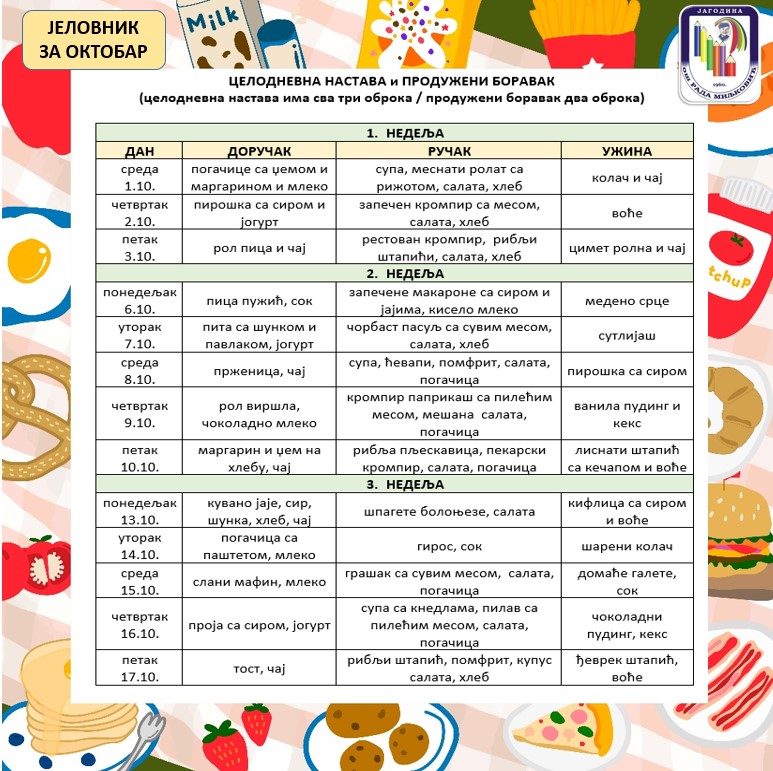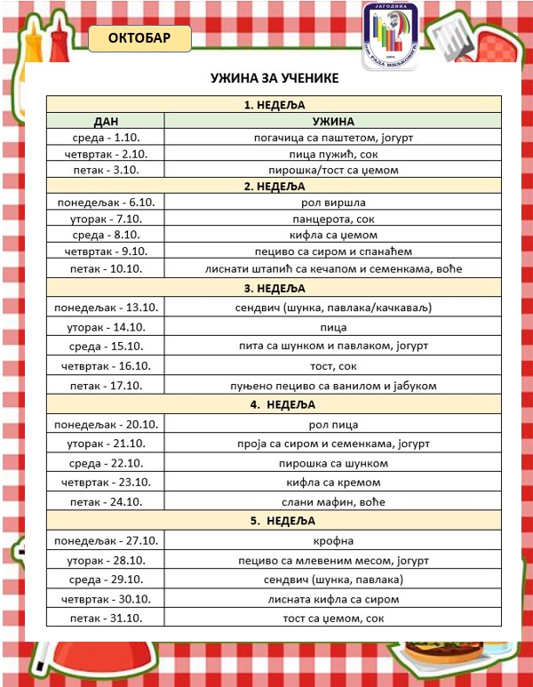 Са задовољством вас обавештавамо да је школска кухиња почела са радом. Жеља нам је да домаћим производима и здравом храном задовољимо потребе сваког ученика.
